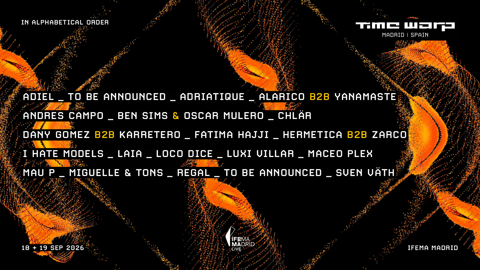 SVEN VÄTH, BEN SIMS B2B ÓSCAR MULERO, ADRIATIQUE, LOCO DICE, MACEO PLEX O FÁTIMA HAJJI LIDERAN EL REGRESO DE TIME WARP MADRID EN SU TERCERA EDICIÓN